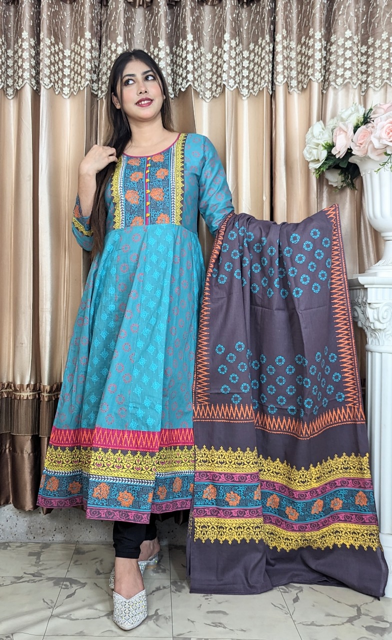 Anarkali Two Piece – Pure Cotton Block & Screen Print Collection