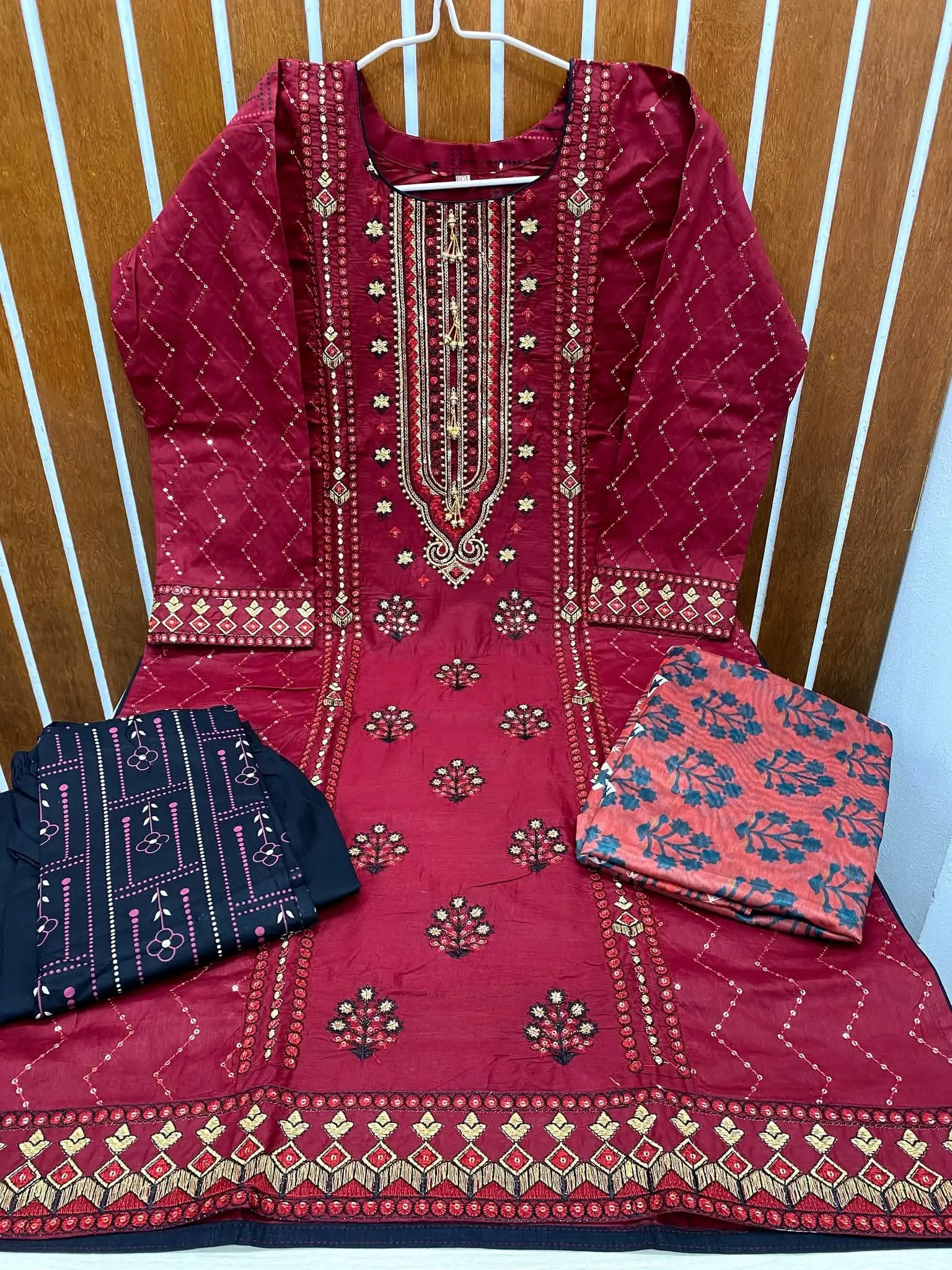 - থ্রি পিস সেট: টপ + সালোয়ার + দুপাট্টা